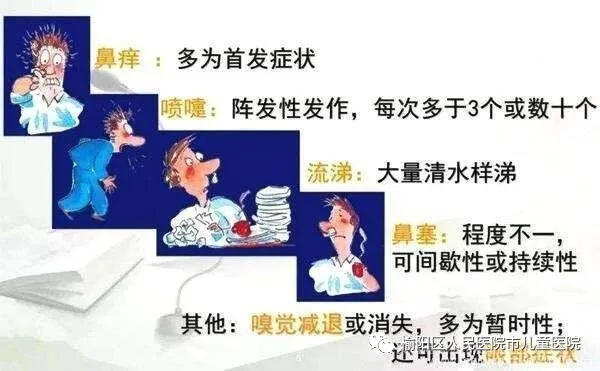 临床表现: 鼻痒、打喷嚏、流鼻涕、鼻子堵,那么鼻痒的话非常难受,所以很多小孩得这过敏性鼻炎后老扣鼻子,甚至于家长误以为他得了多动症,他老是皱鼻、揉鼻子、揉眼睛。