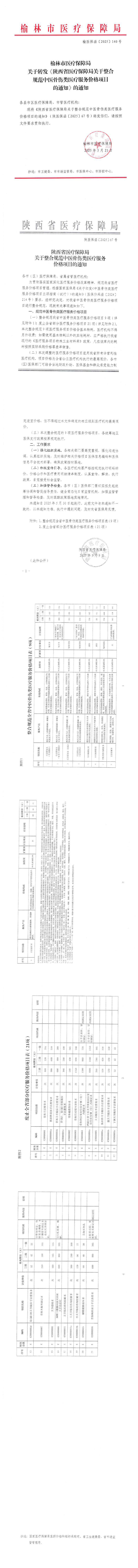 关于我院执行中医骨伤类项目(榆医保函〔2025〕140号)的公告