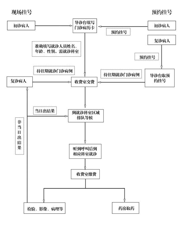凡来我院就诊人员请先至门诊部导诊台处填写本院门诊病历或往期就诊病历,病历不能相互借用及串用,若由此导致不良后果,由患者自行承担。
